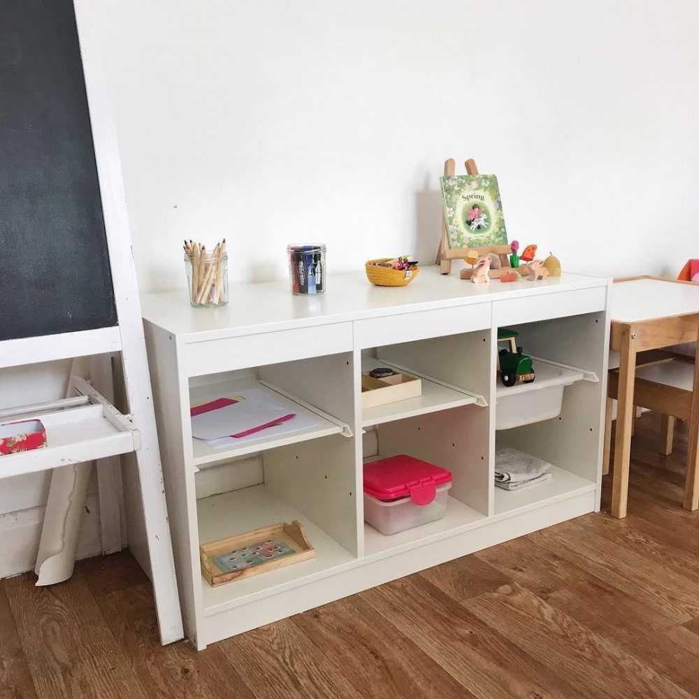 Если вы не решаетесь дать ребёнку краски или клей, то храните их вне доступа — например, на верхних полках. Чтобы ребёнок сам мог выбрать активность и попросить вас. Но постепенно двигайтесь к максимальной автономии.