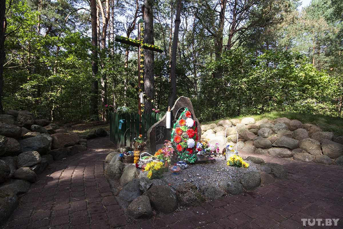 Крест на месте расстрела детей в лесу