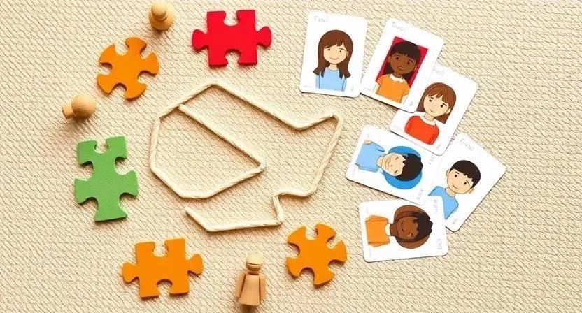 Возраст: 3-5 лет. Материалы: Карточки с изображением эмоций и соответствующие карточки с ситуациями, вызывающими эти эмоции. Описание: Ребенок должен сопоставить карточки с эмоциями и ситуациями.