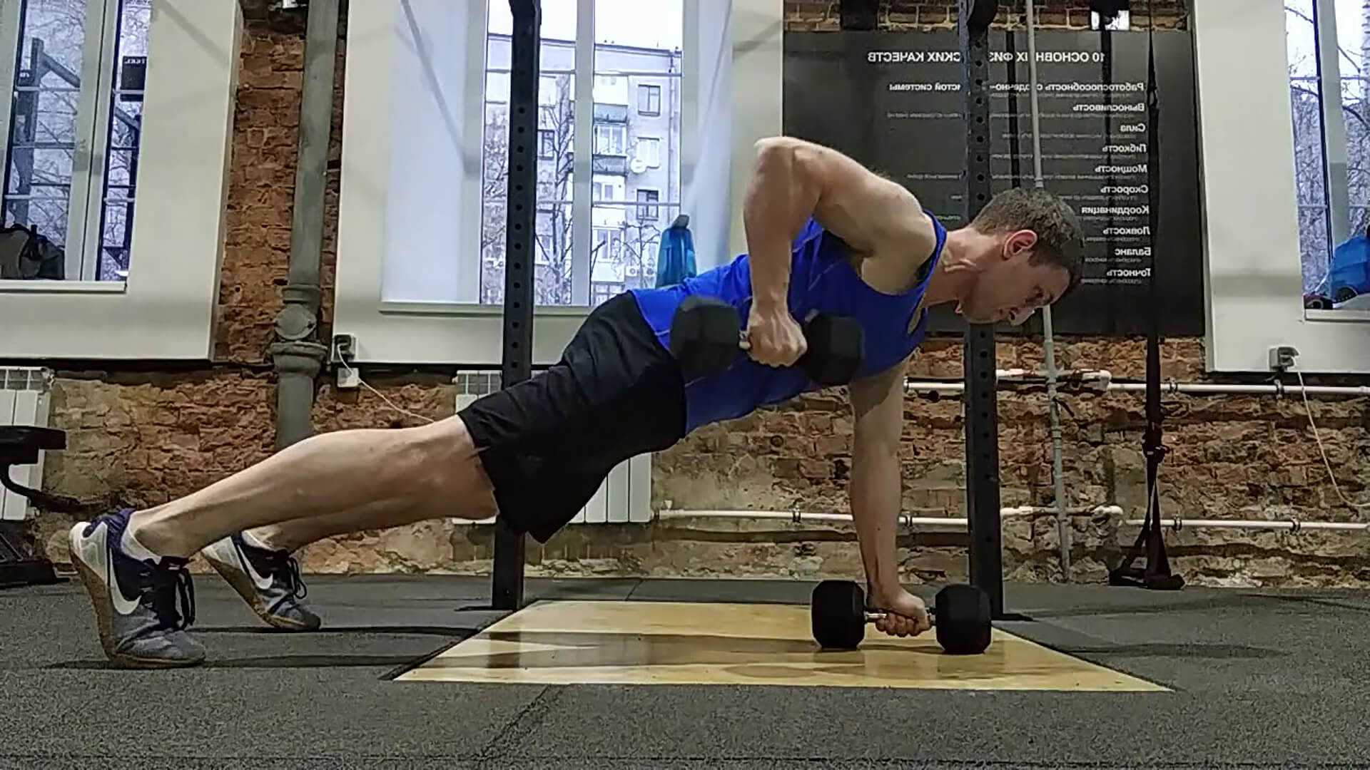 2. Тяга гантели одной рукой в упоре