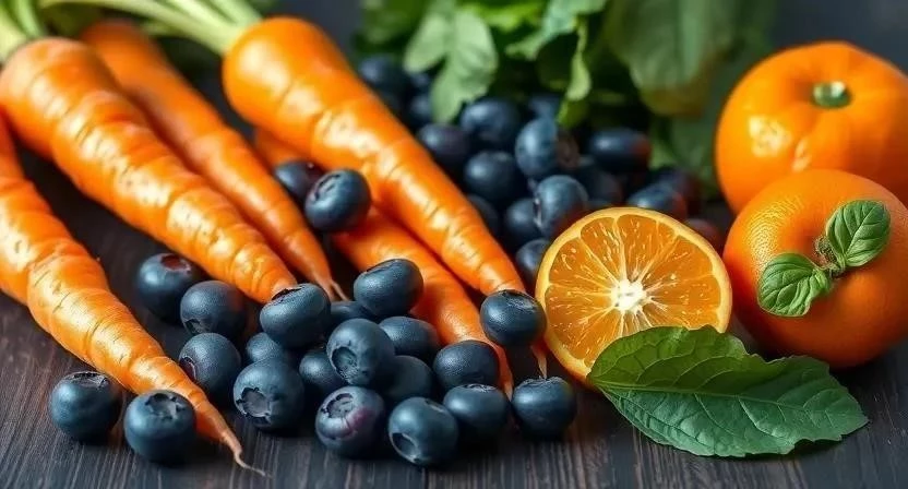 Морковь, шпинат, брокколи, черника, рыба, орехи.